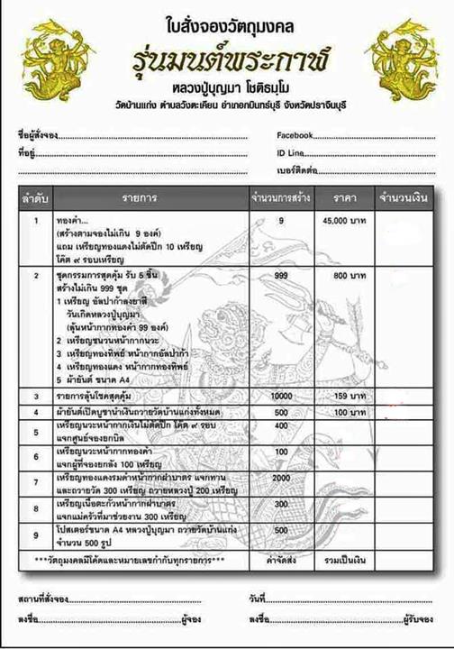รายการ 4.ผ้ายันต์ ราคาจอง 100.-บาท มียอด=สอบถาม