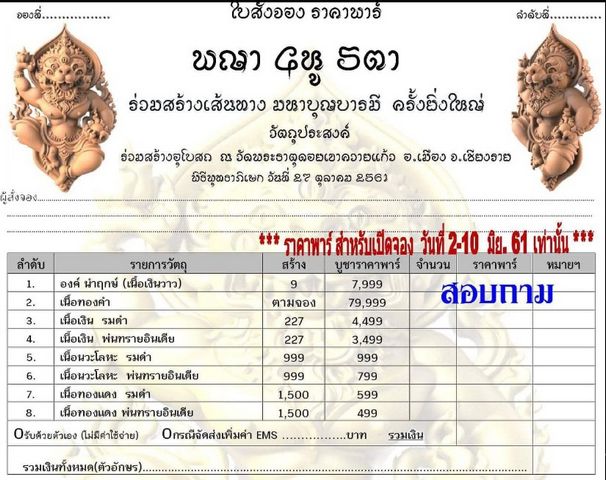 ศูนย์จองพระใหม่ กุ๊ก เขาชะเมา โทร. 087-9380033