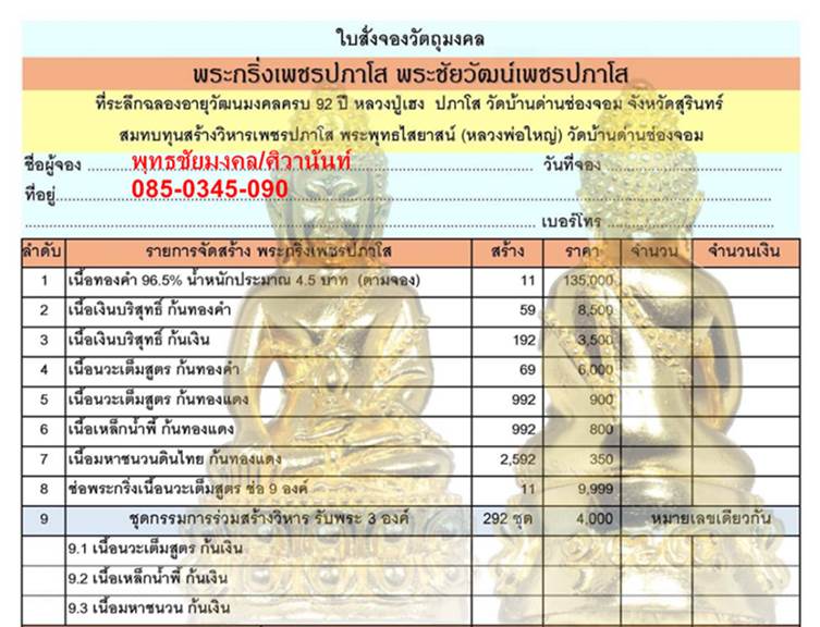 เปิดจองตามรายการราคาวัดค่ะ