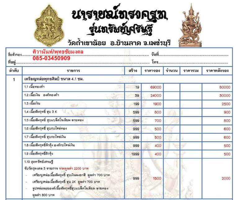 เปิดจองพุทธศิลป์ พระนารายณ์ทรงครุฑ รุ่นทรัพย์เศรษฐี วัดถ้ำเขาน้อย อ.บ้านลาด จ.เพชรบุรี