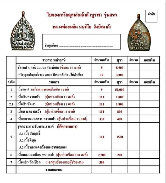 รายการ 5.ชุดกรรมการ (รับพระ 3 องค์) ราคาจอง 1,500.-บาท มียอด = 1