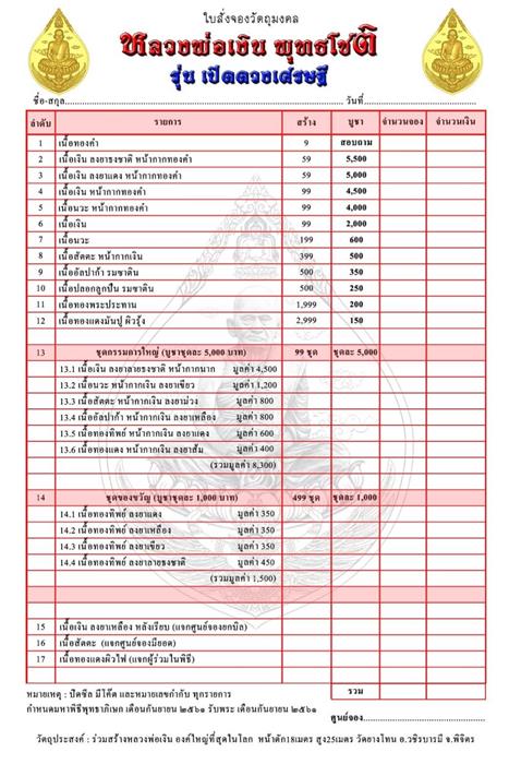 รายการ 14.ชุดของขวัญ (รับพระ 4 เหรียญ) ราคาจอง 1,000.-บาท มียอด = 10