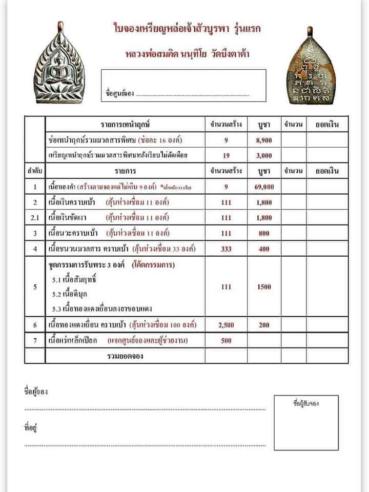 รายการ 5.ชุดกรรมการ (รับพระ 3 องค์) ราคาจอง 1,500.-บาท มียอด = 1