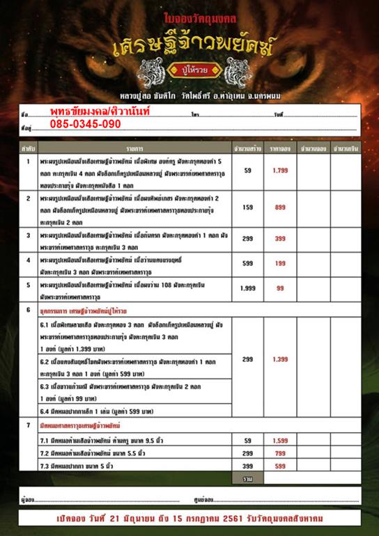 รายการวัตถุมงคลจองราคาวัด