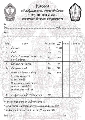(Facebook Fanpage : ศูนย์จองพระใหม่เกจิมหาเวทย์)