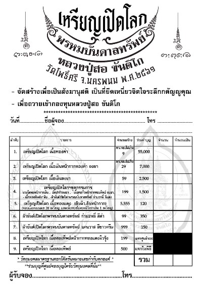 -เพื่อถวายเข้ากองทุนหลวงปู่สอ ขันติโก