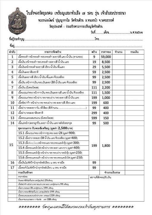 เปิดจองเหรียญเสมาหัวเสือ ๘ รอบ รุ่น " เจ้าสัวสมปรารถนา " หลวงพ่อพัฒน์ ปุญญกาโม วัดห้วยด้วน ( ธารทหาร ) อ.หนองบัว จ.นครสวรรค์