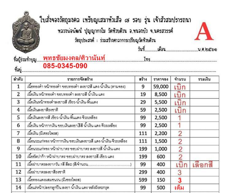 วัตถุมงคลทุกรายการมีโค๊ดและหมายเลขกำกับ