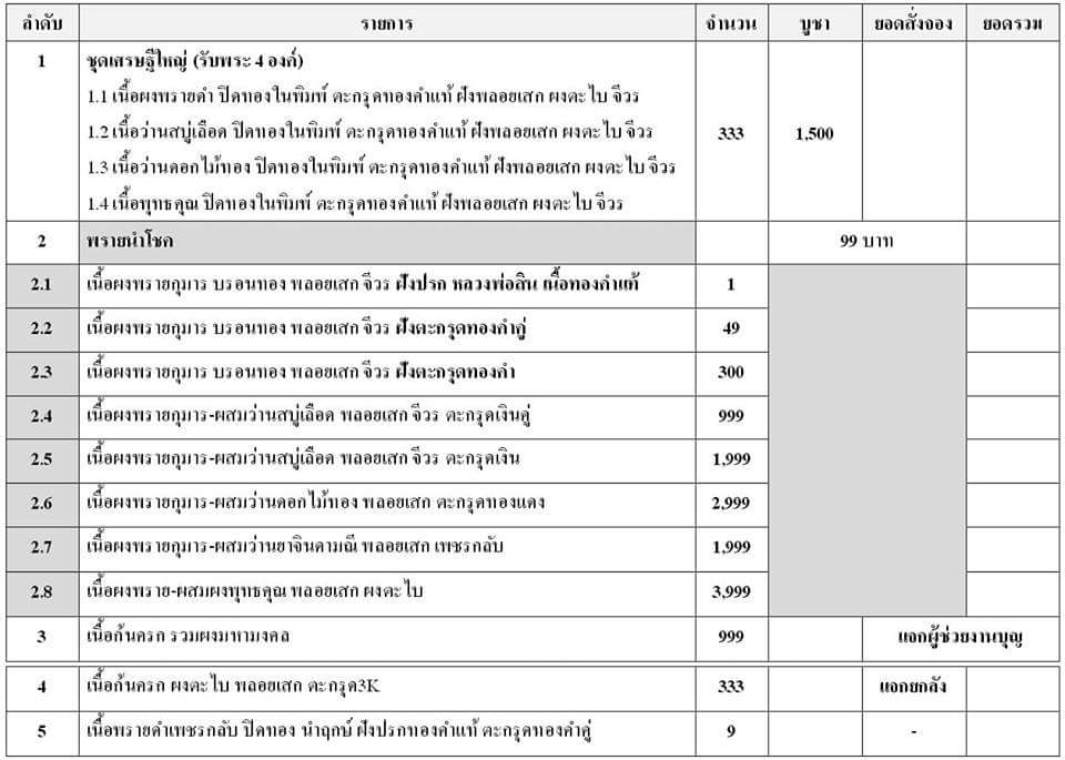 1.ชุดกรรมการ(รับพระ 4 องค์ มีตะกรุดทองคำแท้ ทุกองค์) จอง 1,500฿ มียอด 10 ชุด