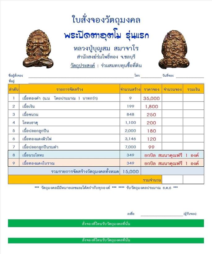 ราคาจองตามใบ มีรายการเปิดจองตามนี้ครับ