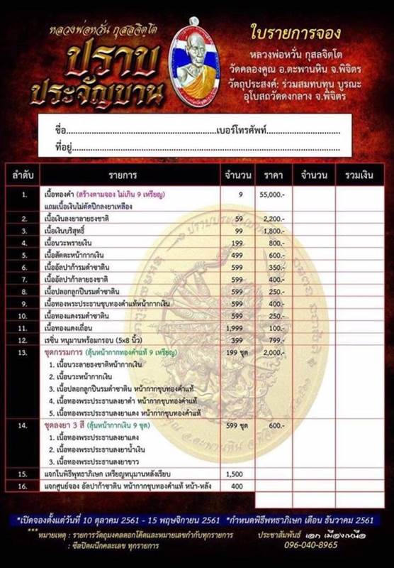 *** มีรายการเปิดจอง ดังนี้ครับ
