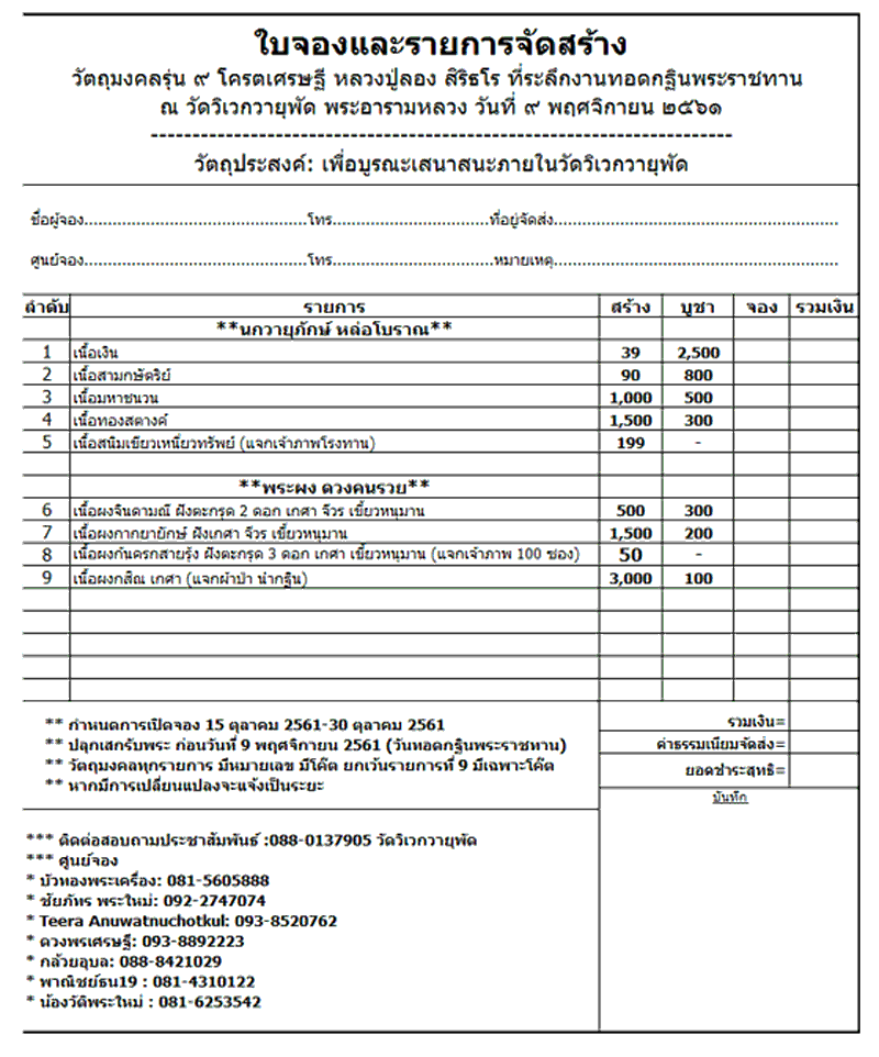 วัตถุประสงค์เพื่อบูรณะเสนาสนะภายในวัดวิเวกวายุพัด