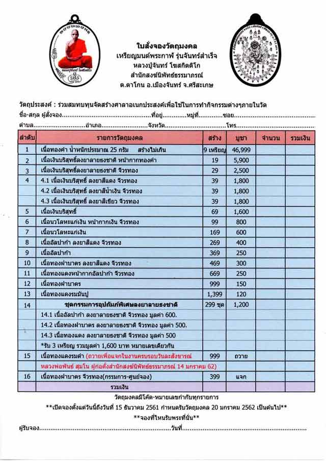 กำหนดรับพระหลัง 20 มกราคม 2562 |