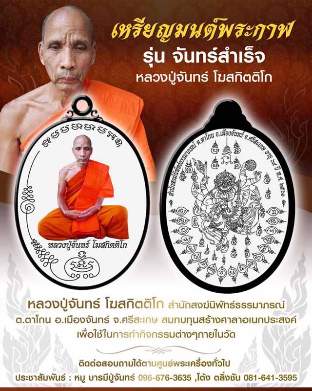 เปิดจองเหรียญมนต์พระกาฬ รุ่นจันทร์สำเร็จ หลวงปู่จันทร์ โฆสกิตติโก สำนักสงฆ์นิพัทธ์ธรรมาภรณ์ จ.ศรีสะเกษ