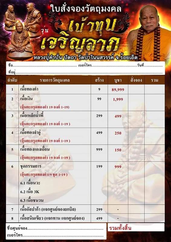 2.เนื้อเงิน จอง 1,999฿ มียอด 5 องค์