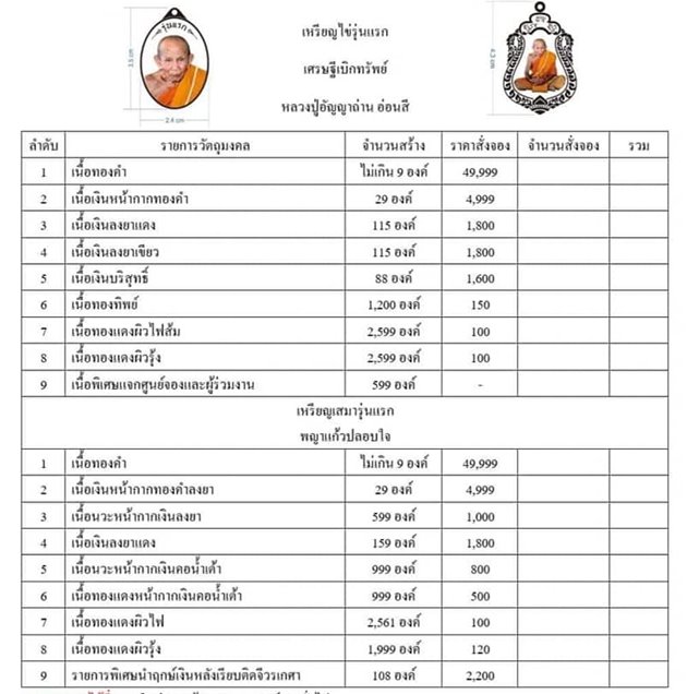 ราคาจองตามใบ มีทุกรายการติดต่อสอบถามได้ครับ