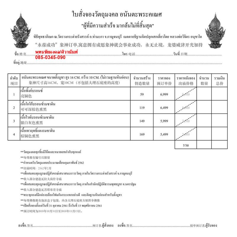 เปิดสั่งจอง พระบูชา อนันตะพระคเณศ ขนาด