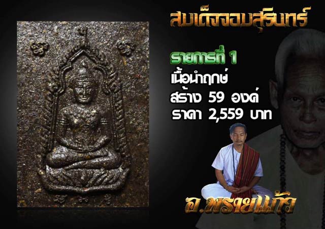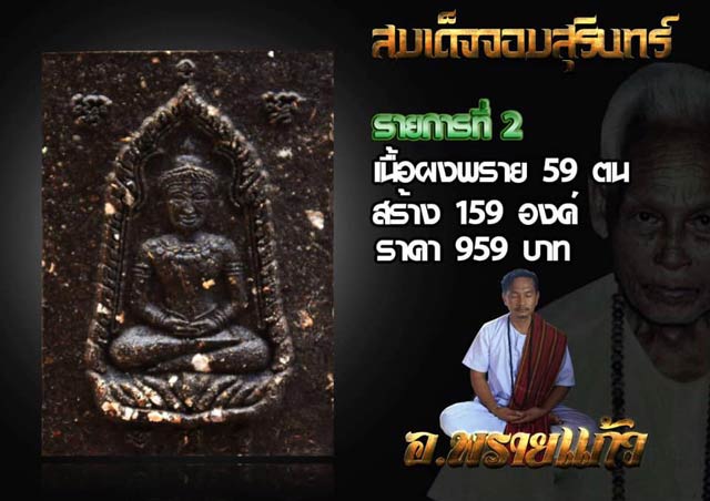 อีกทางเลือกหนึ่ง ที่ไม่ควรพลาดด้วยประการทั้งปวง สามารถใช้แทนรุ่นเก่าที่มีราคาแพงและหายากสุด ๆ ด้วย ผงพรายเก่าล้วน ๆ "สมเด็จจอมสุรินทร์" เป็นพิมพ์ทรงที่ท่านอาจารย์เปล่งท่านชอบที่สุดเพราะท่านศรัทธาในพระยาจอมสุรินทร์
