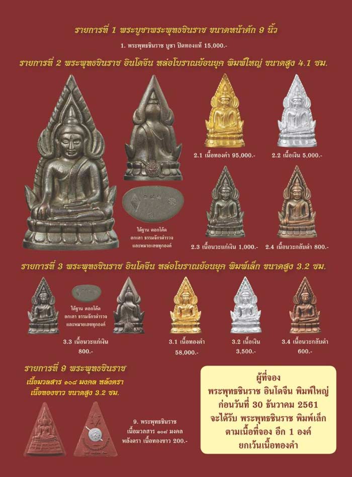 รายการสุดคุ้มค่า เฉพาะ ชินราชอินโดจีน จองพิมพ์ใหญ่ แถม พิมพ์เล็กเนื้อเดียวกัน (เว้นทองคำ) ถึง 30 ธค. นี้ เท่านั้นครับ