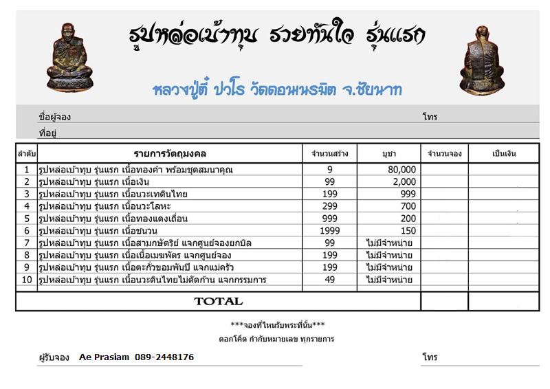 *** มีรายการเปิดจอง ดังนี้ครับ