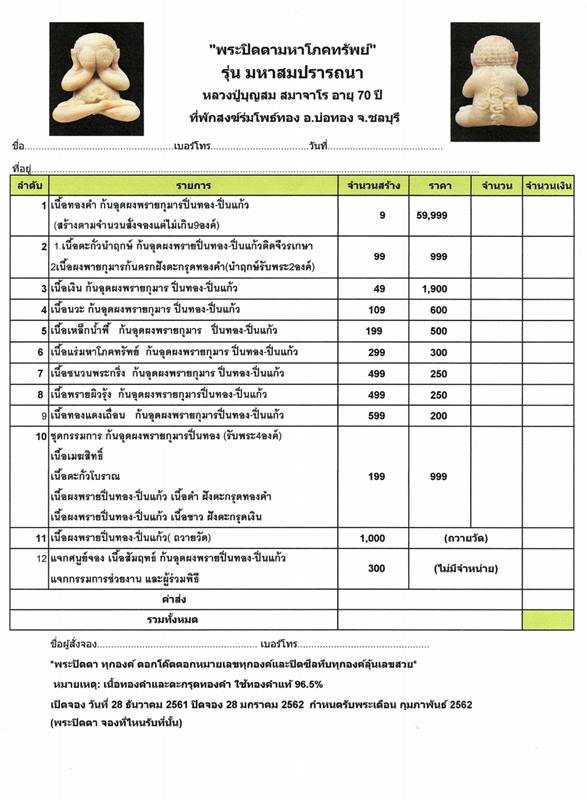 ***เปิดจอง// พระปิดตามหาโภคทรัพย์ รุ่น "มหาสมปรารถนา" หลวงปู่บุญสม สมาจาโร ที่พักสงฆ์ร่มโพธิ์ทอง อ.บ่อทอง จ.ชลบุรี