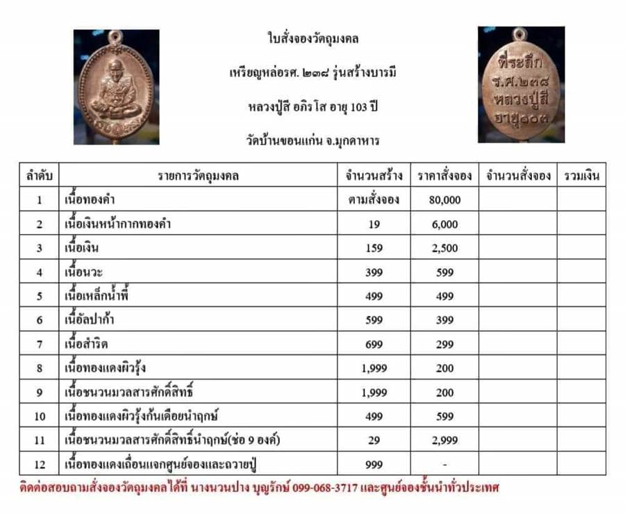 *** มีรายการเปิดจอง ดังนี้ครับ