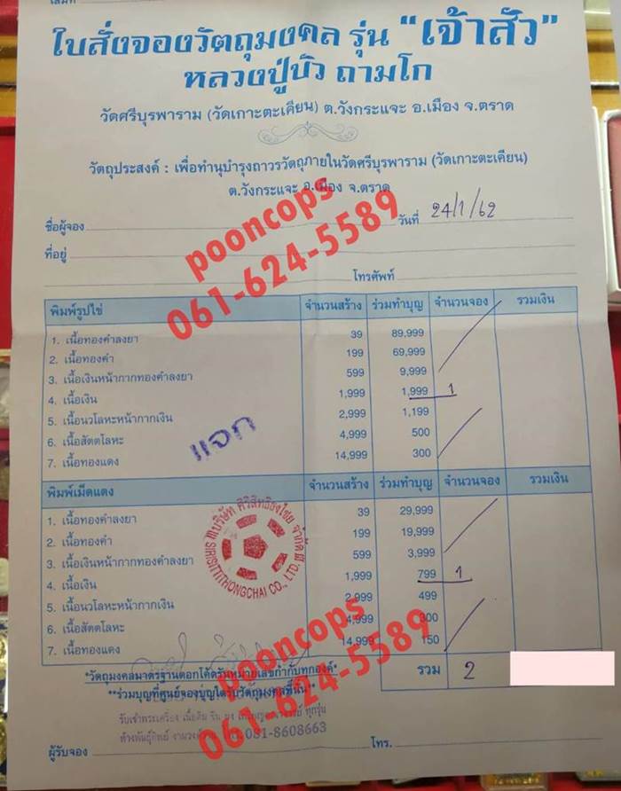 ***รับใบจองตัวจริง ไปรับเองที่ร้านพี่บอยได้เลยครับ***