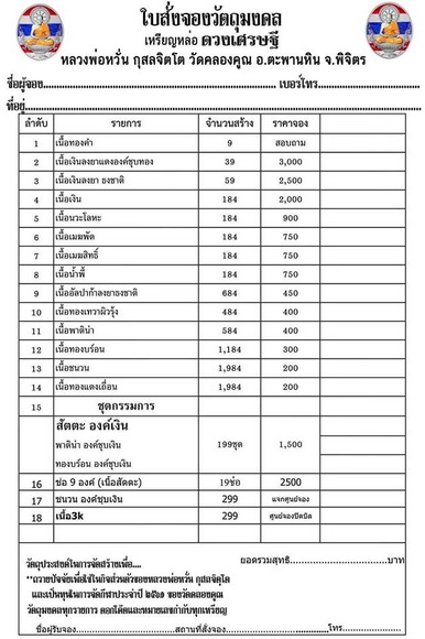 #ก่อนปิดจอง 5 วัน# เปิดให้จองบูชา เหรียญหล่อรุ่น ดวงเศรษฐี หลวงพ่อหวั่น กุสลจิตโต วัดคลองคูณ อ.ตะพานหิน จ.พิจิตร