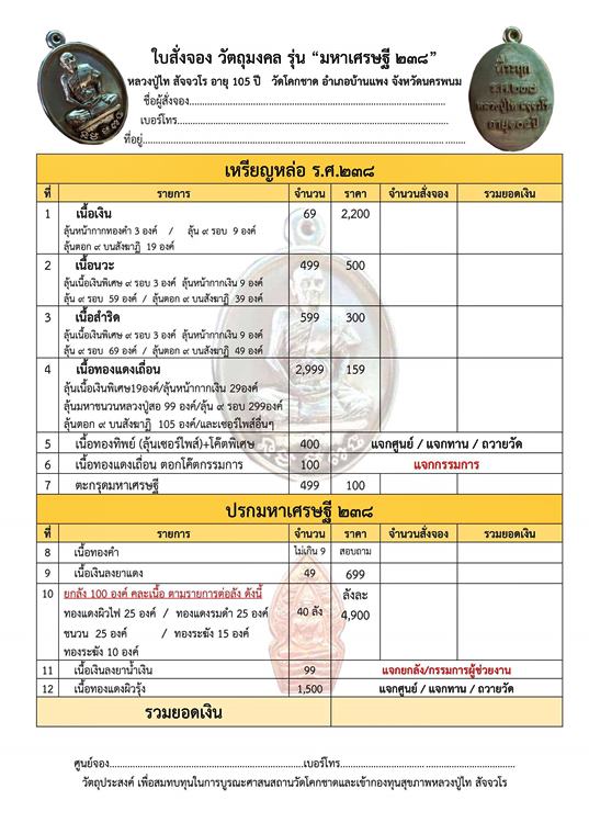 รายการ 7.ตะกรุดมหาเศรษฐี ราคาจอง 100.-บาท มียอด = 20