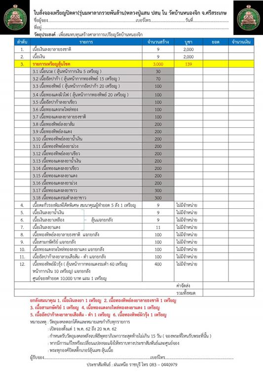 รายการ 1.เนื้อเงินลงยาธงชาติ ราคาจอง 2,000.-บาท มียอด= สอบถาม