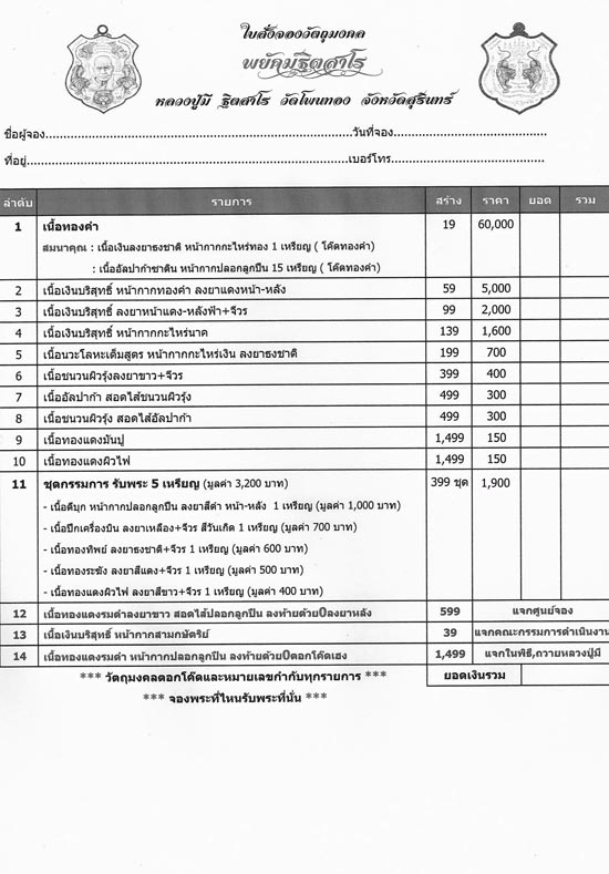 รายการ 11.ชุดกรรมการ (รับพระ 5 เหรียญ) ราคาจอง 1,900.-บาท มียอด= 5
