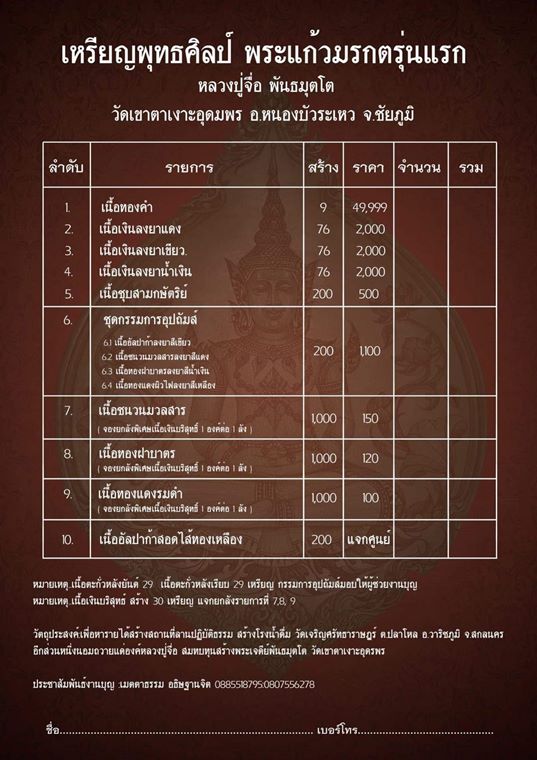 *** เปิดจอง// เหรียญพุทธศิลป์ พระแก้วมรกต รุ่นแรก หลวงปู่จื่อ พันธมุตโต วัดเขาตาเงาะอุดมพร อ.หนองบัวระเหว จ.ชัยภูมิ