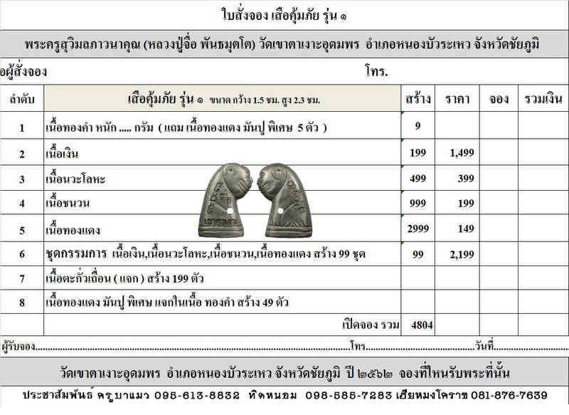 4 เนื้อชนวน สร้าง 999 ราคา 199 บาท มียอด 100 ตัว