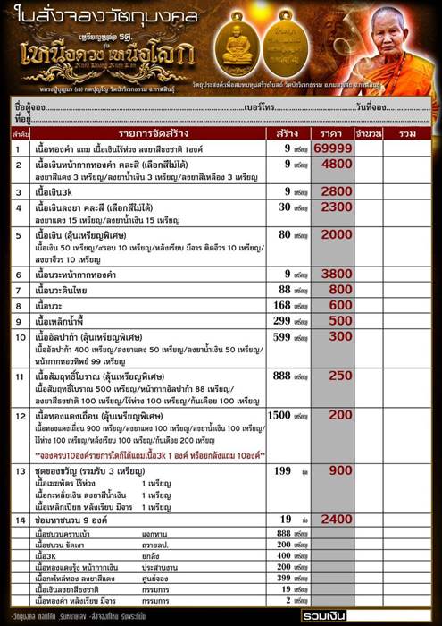 รายการ 14.ช่อมหาชนวน 9 องค์ ราคาจอง 2,400.-บาท มียอด = 2