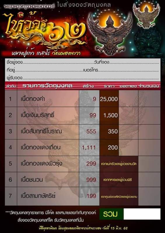 หัวข้อกระทู้ : เปิดจองพญาครุฑบูรพาจารย์ ที่ระลึกไหว้ครู​วัดหนองพะวา บูชาครูหลวงปู่แก้ว​ เกสาโร