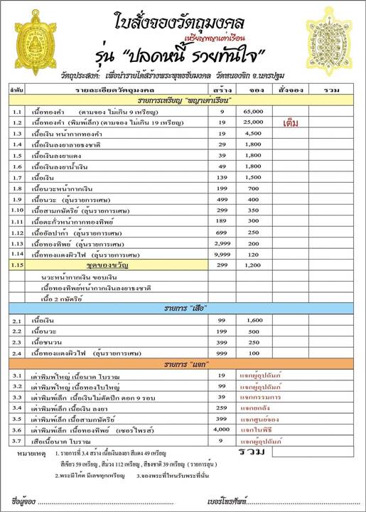รายการ 1.15 ชุดของขวัญ (รับพระ 3 เหรียญ) ราคาจอง 1,200.-บาท มียอด= 2