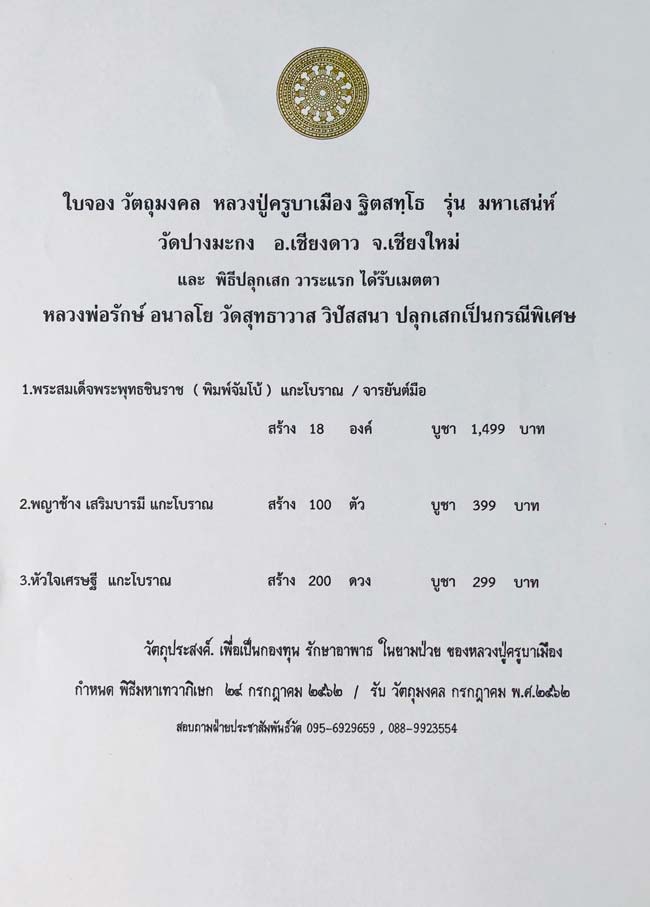 🈲🈲 สร้าง 100 ตัว บูชา 399 บาท