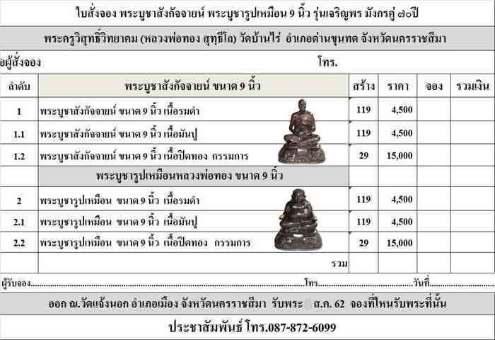 ราคา จอง 15,000 บาท มียอด 1 องค์