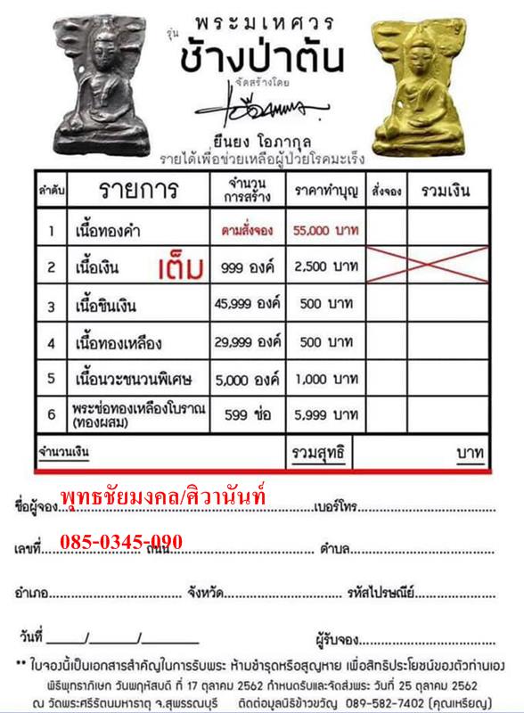 2.เนื้อเงิน สร้าง 999 องค์ บูชา 2,500 บาท ยอดเต็ม
