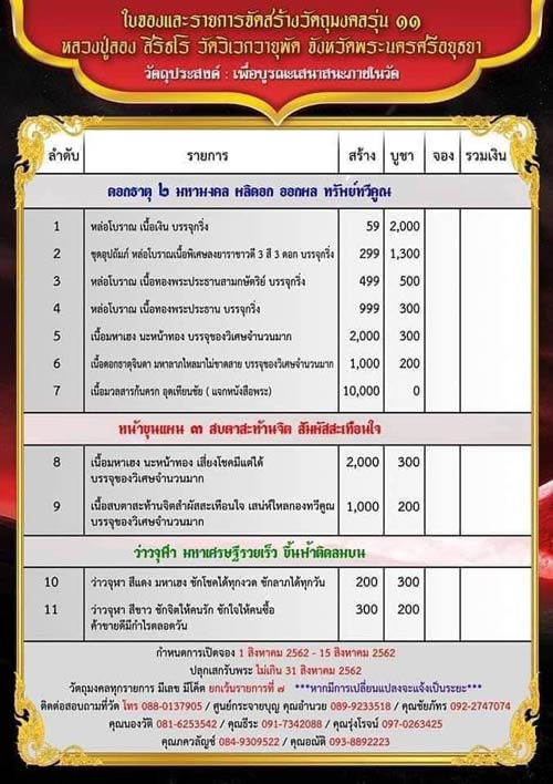 รายการที่ 1 จอง 2,000 บาท มี 1 องค์