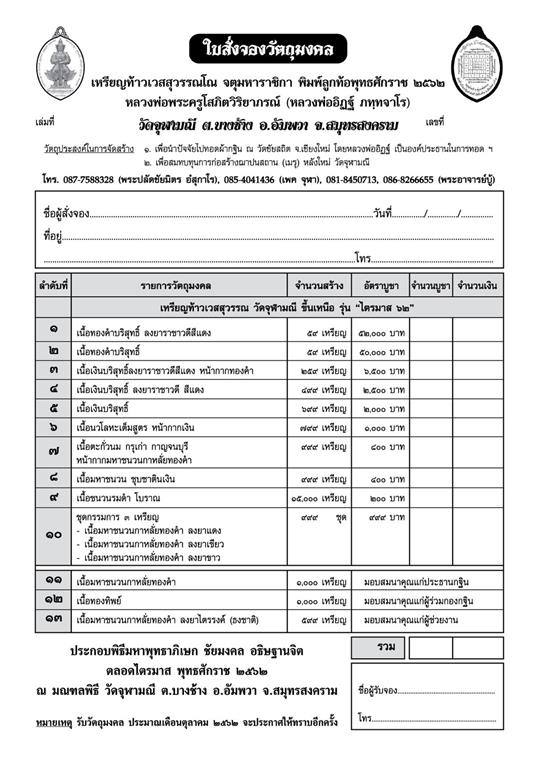 *** เปิดจอง// เหรียญท้าวเวสสุวรรณ พิมพ์ลูกท้อ รุ่น ไตรมาส 62 หลวงพ่ออิฏฐ์ ภทฺทจาโร วัดจุฬามณี จ.สมุทรสงคราม