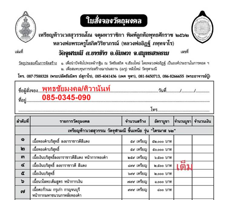 รับวัตถุมงคล ประมาณปลายเดือนตุลาคม 2562 จะประกาศให้ทราบอีกครั้ง