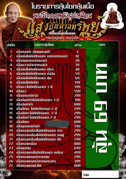 รายการลุ้นโชค ลุ้นเนื้อ = 30 องค์ราคาองค์ละ 90 บาท