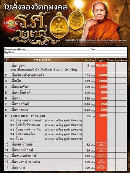 ราคาจอง มีรายการจองตามนี้ครับ