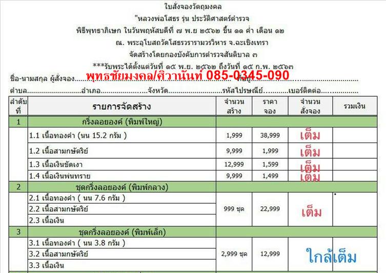 รับพระได้ตั้งแต่ 15 พ.ย.2562 เป็นต้นไป