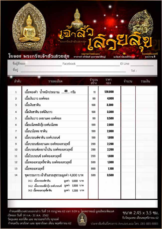 ** ช่องทางการติดต่อสอบถาม สั่งจองเพิ่มเติม **
