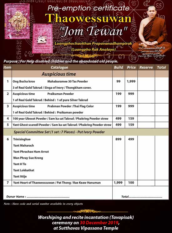 เปิดจอง #ท้าวเวสสุวรรณ รุ่น จอมเทวัญ