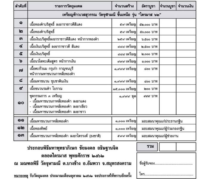 จองรายการ 10.ชุดกรรมการ (รับพระ 3 เหรียญ) 1200บาท มียอด= 1 ชุด