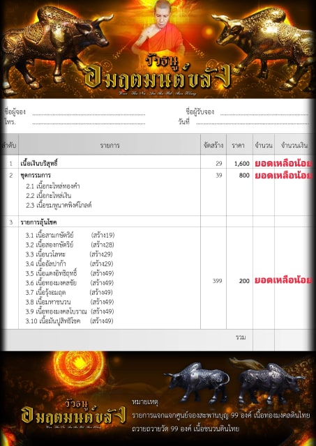 รับวัตถุมงคล ประมาณต้นเดือนธันวาคม |