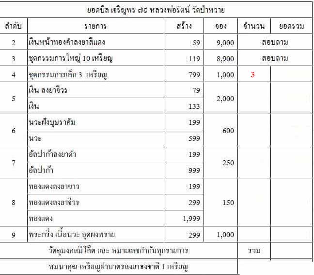 รายการ 4.ชุดกรรมการเล็ก (รับพระ 3 เหรียญ) ราคาจอง 1,000 บาท มียอด= 3 ชุด